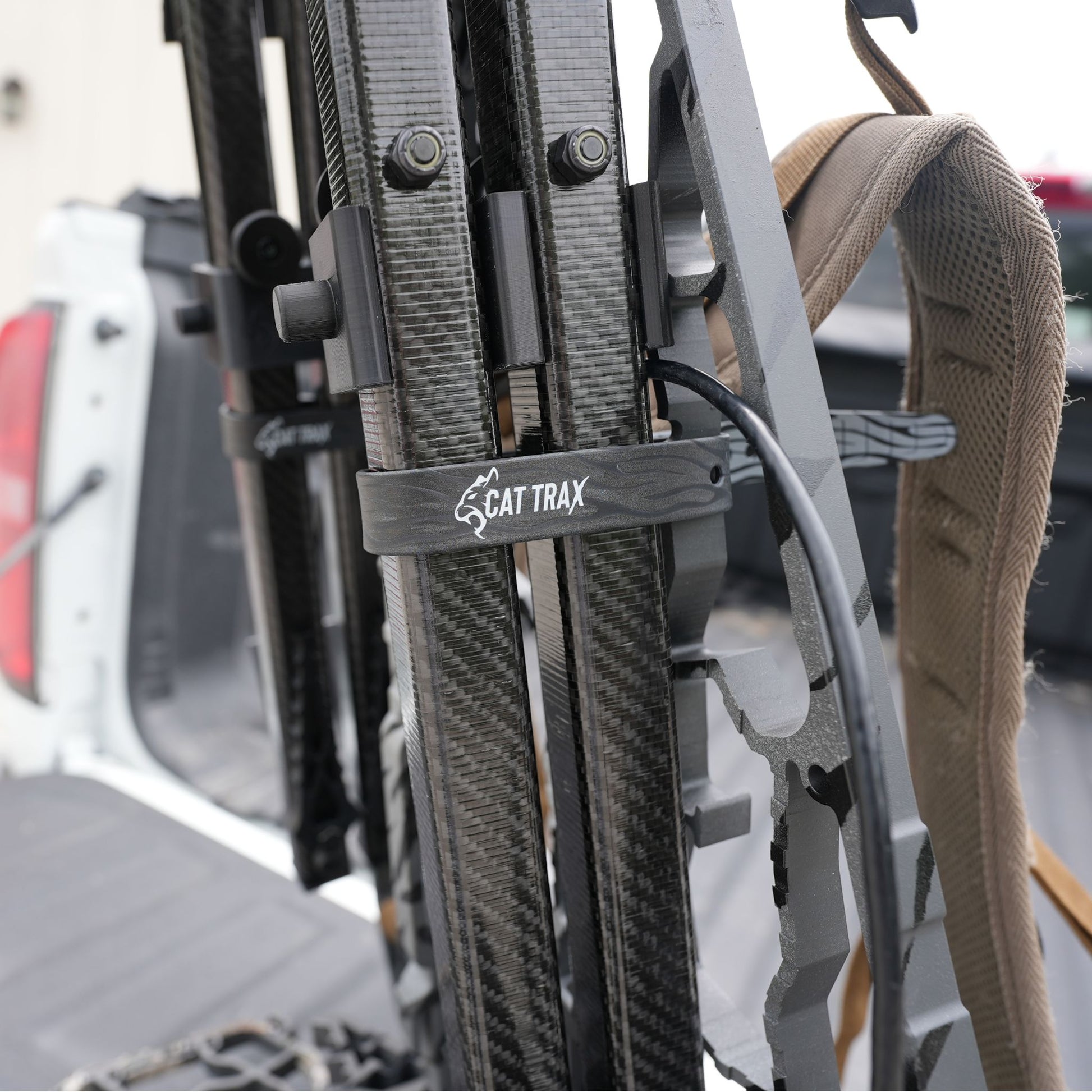 Secure your climbing sticks to tree stand or saddle platforms in the most secure, efficient and quietest way possible with our lightweight rubber gear strap.